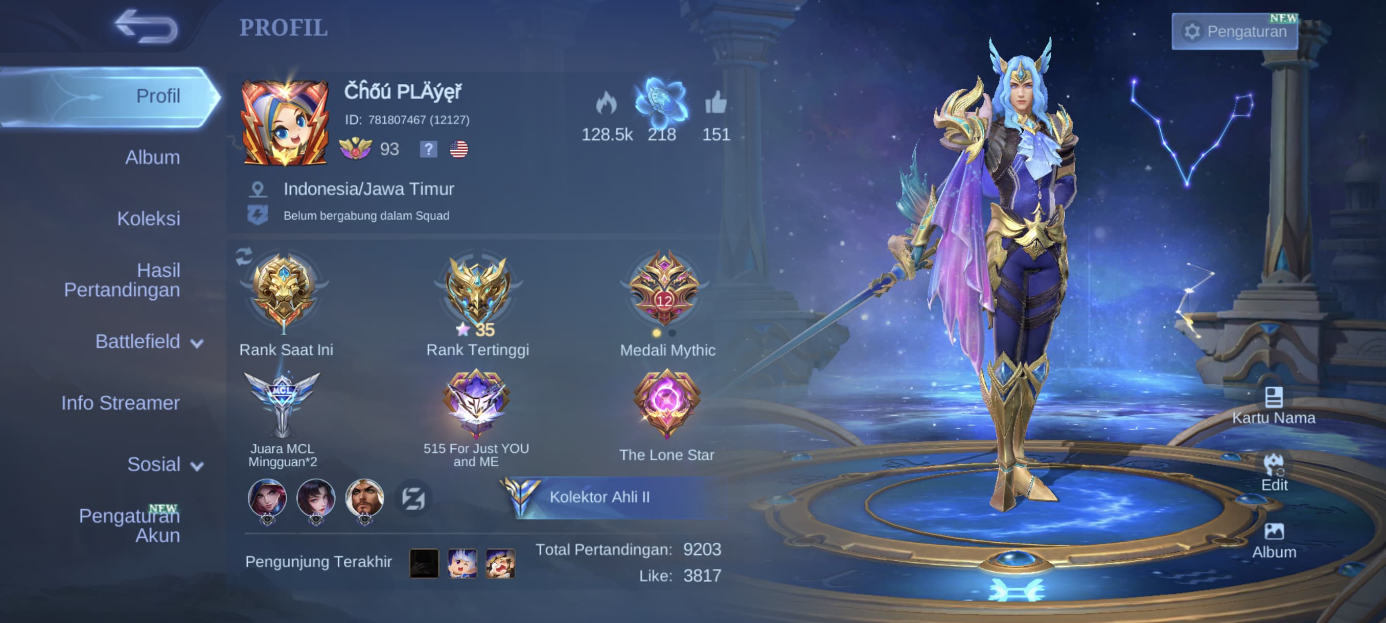 "Chou Player" Akun Mobile Legends Safe Google Data